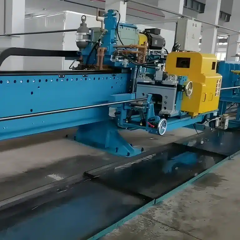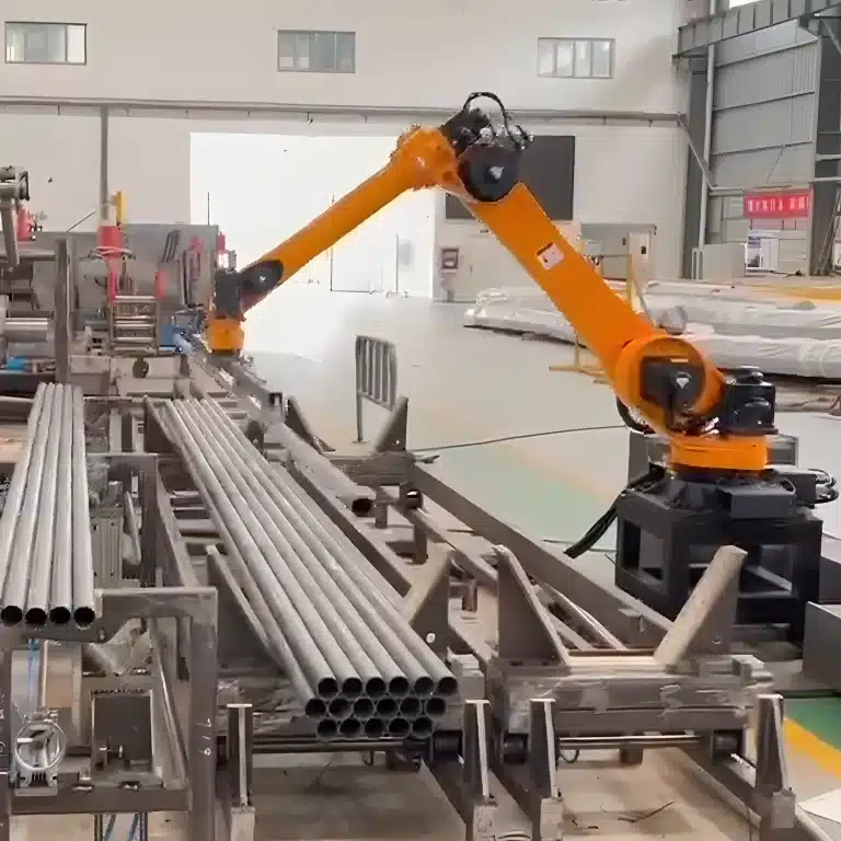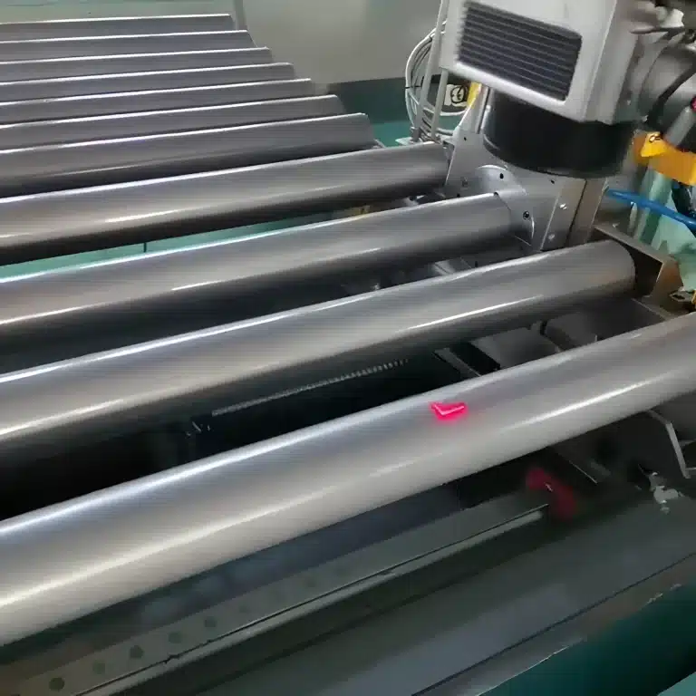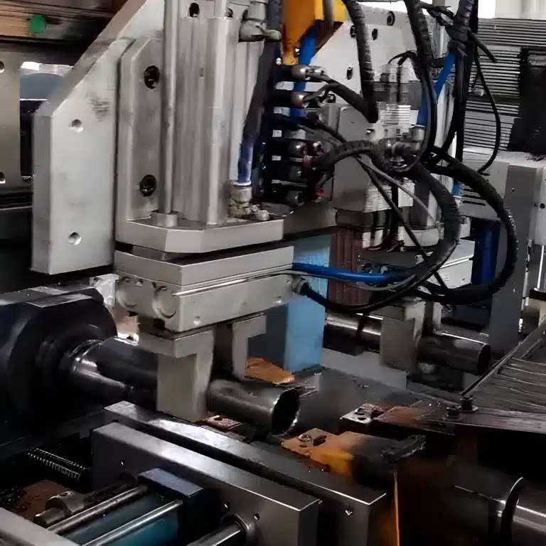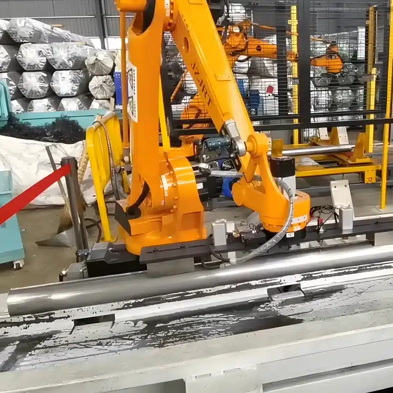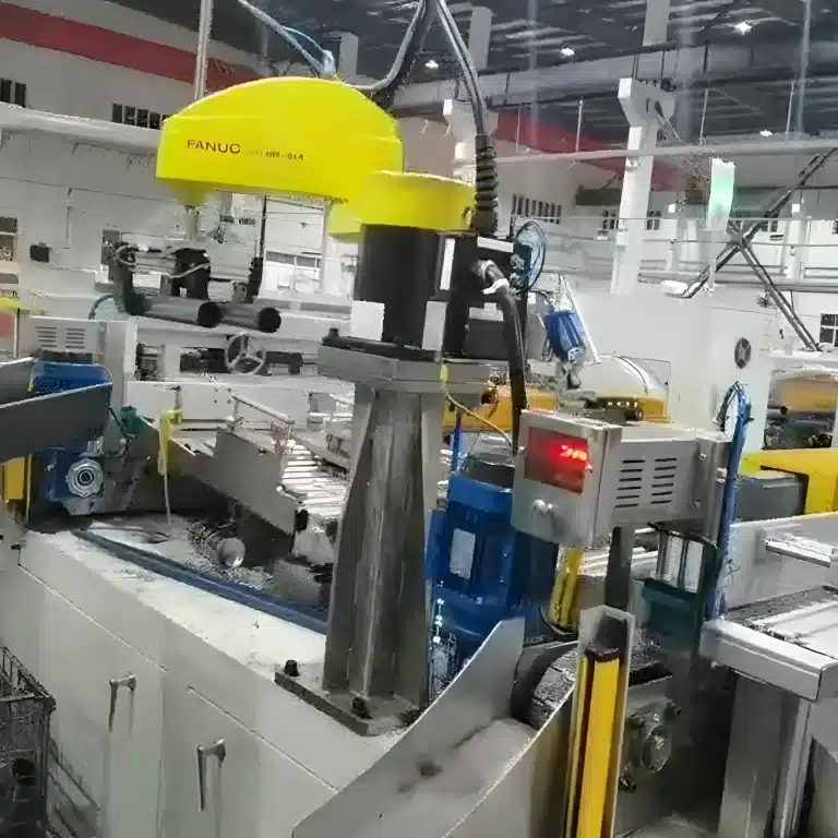 1、钢管定尺多头下切锯生产线是一条高度自动化的生产线,专为钢管的精准切割和加工设计,覆盖了从上料到质量检测的完整流程。这条生产线通过精密的控制和自动化设备,确保